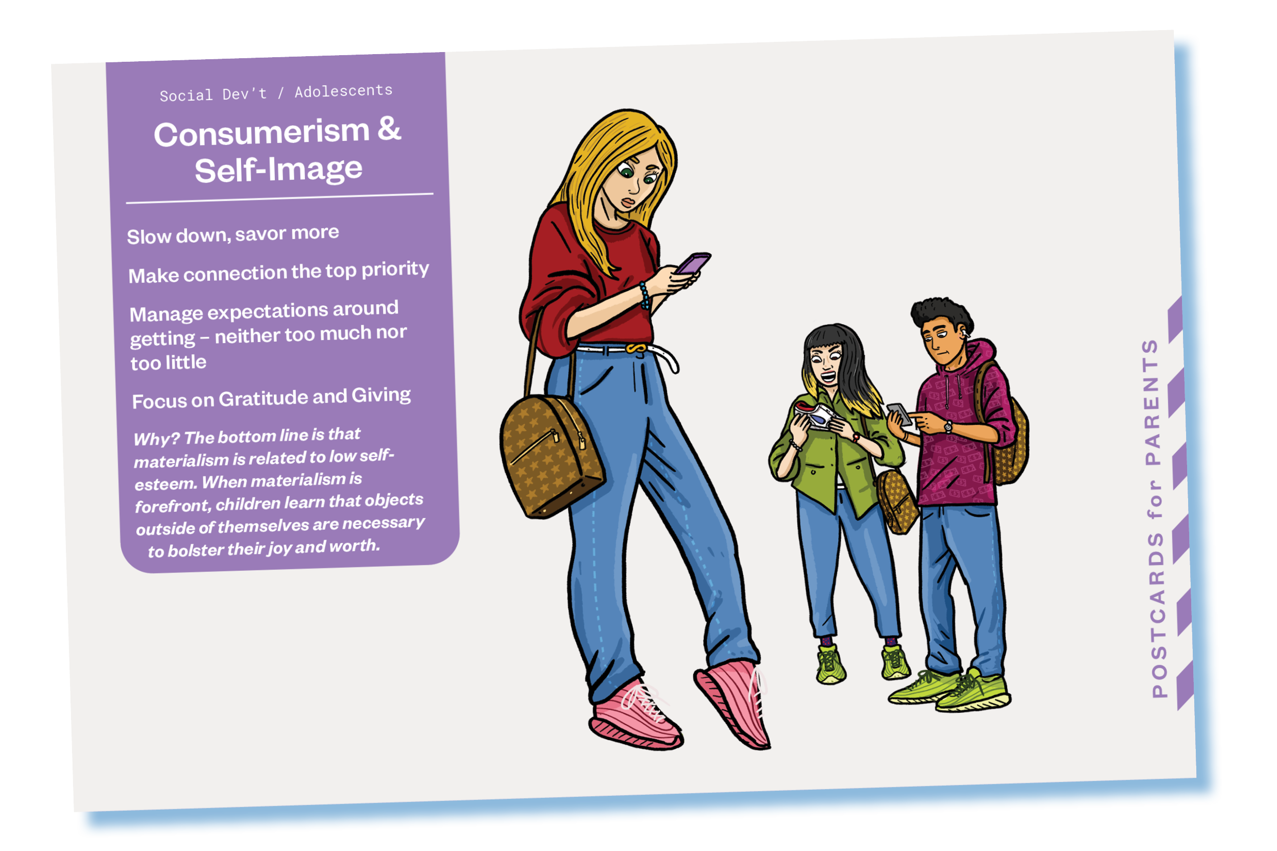 The rapidly changing brains of adolescents, along with the intense focus on peers and identity building, heightens the desire for new things - particularly those with a brand name and status attached. Research indicates that the materialism of peers is even more influential in young people with low self-esteem.